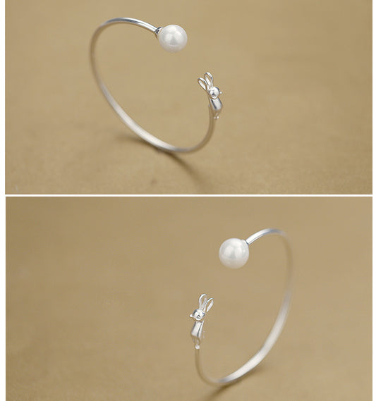 Silver Cat Pearl Bracelet